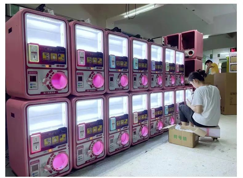 75-100mm Coin Capsule & Egg Twisted Vending Machine Gashapon Toy with Bouncing Ball 220V Amusement Game Boxing Coin Pusher Type